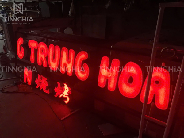 - Đèn được lắp bên trong chữ, tạo hiệu ứng ánh sáng hắt ra từ mặt sau, lan tỏa ra nền bảng.