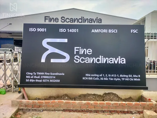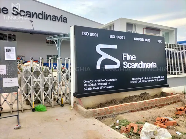 Bảng hiệu chữ nổi mica Bình Dương gắn nền ốp alu (Khách hàng nhà máy Fine Scandinavia)