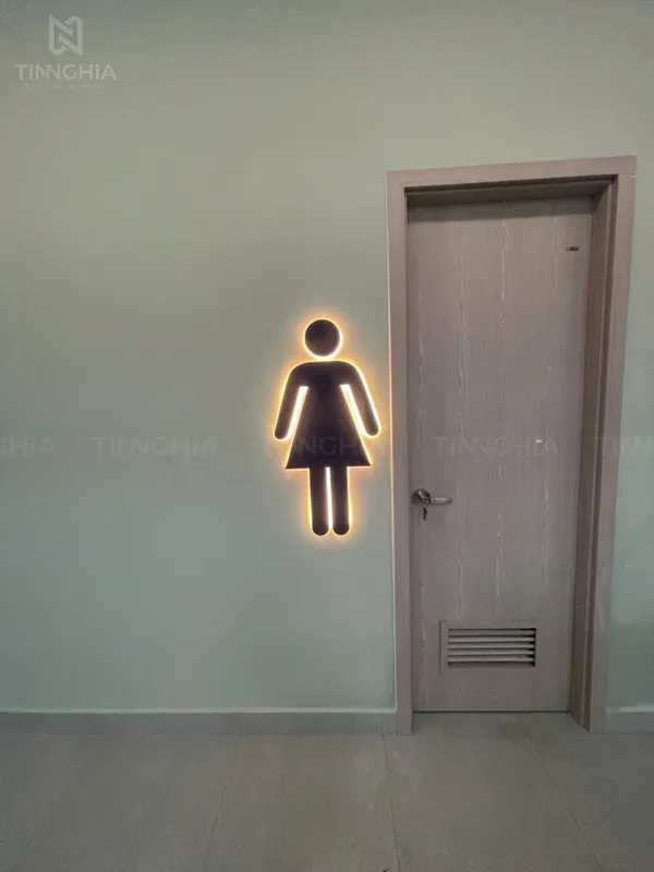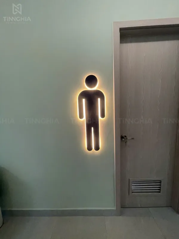 Biển Biểu Tượng Nam/Nữ: Các biểu tượng hình người được uốn nổi khối mica hoặc vật liệu tương đương, bên trong có đèn LED hắt sáng viền. Đây là một dạng biến thể của hộp đèn mica hoặc biển chỉ dẫn uốn nổi có đèn LED đơn giản nhưng cực kỳ hiệu quả, giúp người dùng nhận biết ngay lập tức, ngay cả trong điều kiện thiếu sáng.