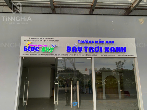 Thi công bảng hiệu chữ nổi inox cho trường mầm non tại Bình Dương