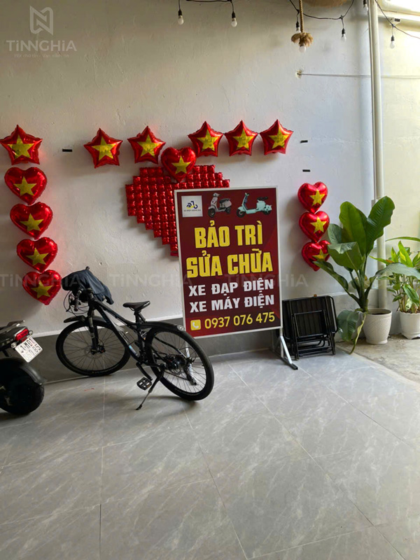 Bảng hiệu alu chữ nổi mica tiệm coffee Xàm + Cửa hàng xe điện Hồng Hà