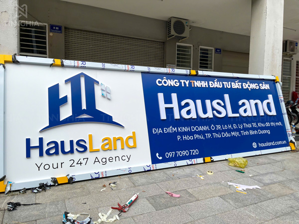 Thi công biển hiệu bất động sản alu cho công ty HausLand Bình Dương