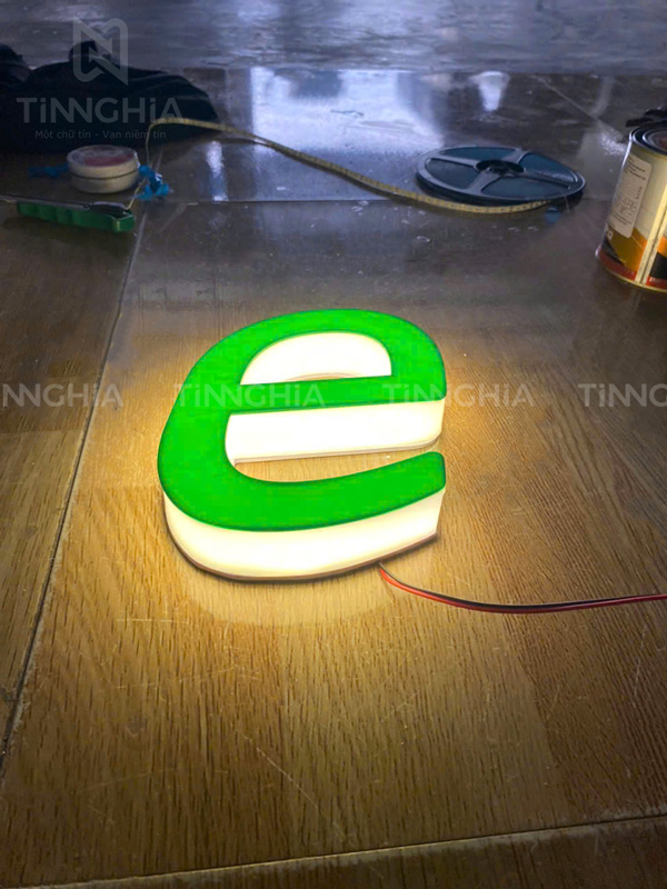 Mẫu chữ nổi mica kết hợp đèn led sáng chân, sáng mặt