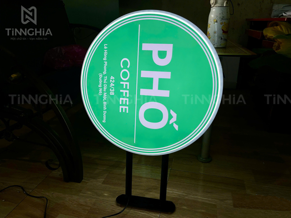 Hộp đèn tròn mica dán decal biển hiện quán cà phê