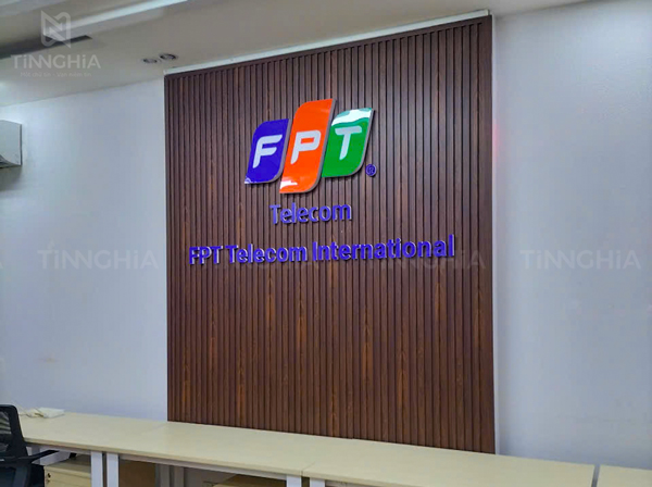 Làm biển gắn tường thanh lam nhựa chữ mica nổi (Khách hàng: Văn phòng FPT Telecom Bình Dương)