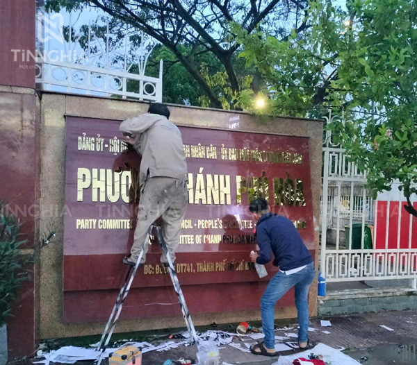 Thay bảng hiệu chữ nổi inox vàng cho trụ sở Chánh Phú Hòa
